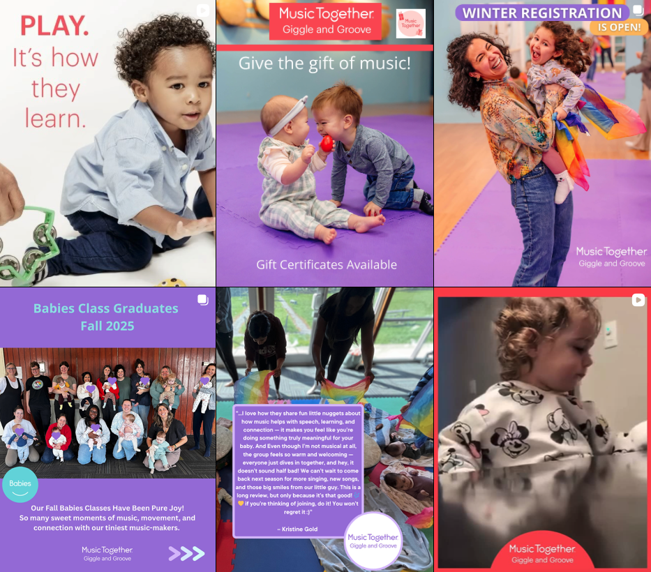 Every week in our music classes at Music Together® Giggle & Groove, babies, toddlers, preschoolers, and the grownups who love them® come together to play musically. Little ones love playing along in class, and caregivers love being a part of their children's growth into confident music-makers. And everyone loves our songs that'll have you grooving along in no time.